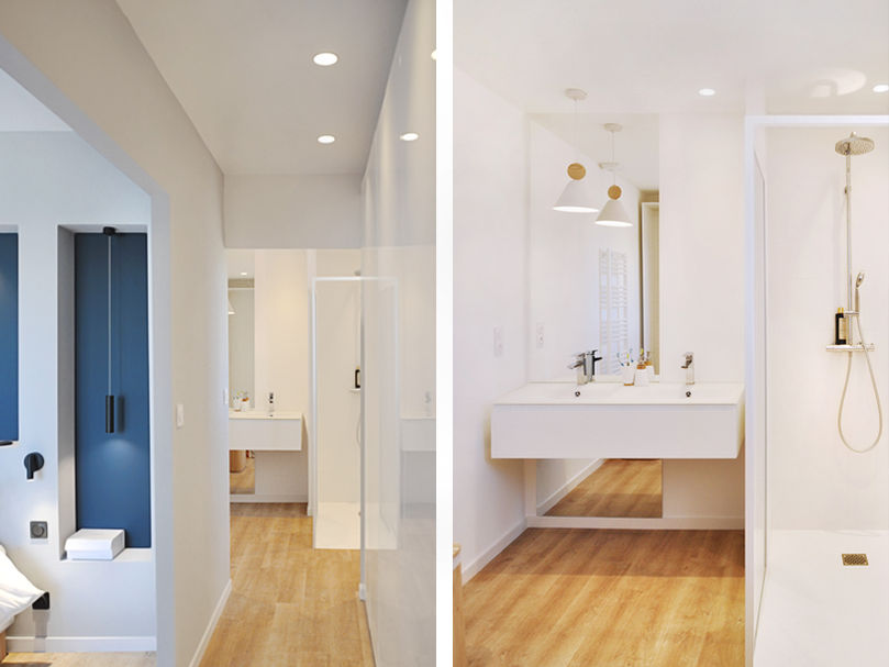 Après avoir consulté tous les membres de la famille sur leurs goûts respectifs, j’ai choisi de mettre l’accent sur la couleur et la lumière, pour une décoration équilibrée aux lignes épurées. Le grand séjour central donne le ton avec un espace affirmé, moderne et familial. Les luminaires et les couleurs particulièrement mis en avant dans ce projet, structurent, définissent, délimitent, soulignent, matérialisent et valorisent chaque espace.